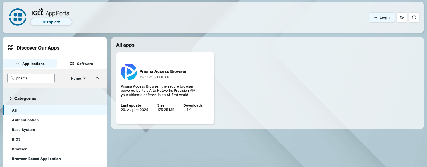 Prisma Browser installation and update over IGEL OS is performed via the IGEL App Portal. For more information, refer to the IGEL App Portal.