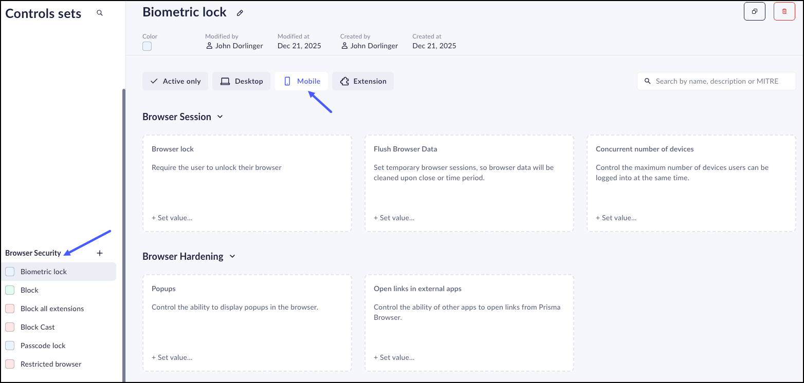 set the security bar for accessing Prisma Browser for Mobile, or with