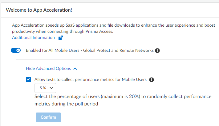 Learn how Prisma Access can speed up app performance using App Acceleration.
