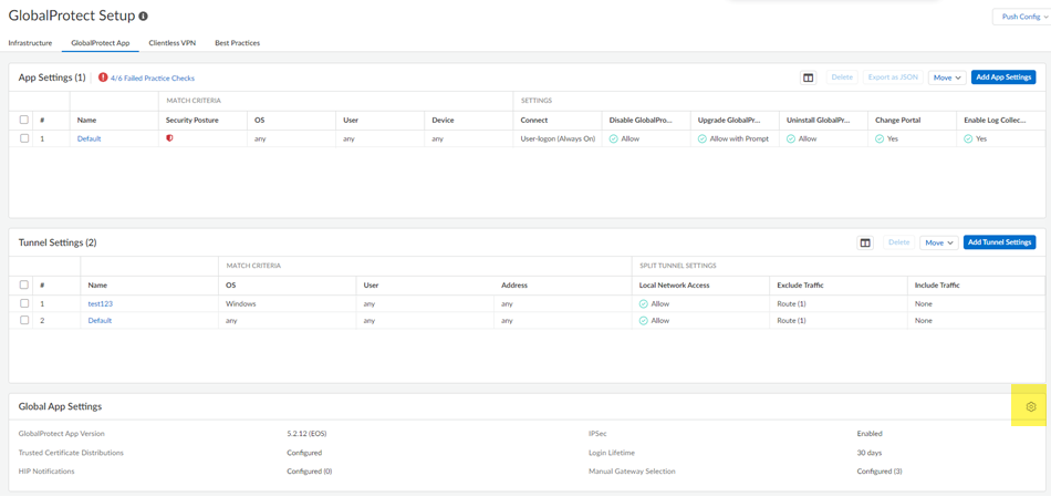 1. Go to ConfigurationNGFW and Prisma AccessConfiguration ScopePrisma AccessGlobalProtectGlobalProtect AppGlobal App Settings.
