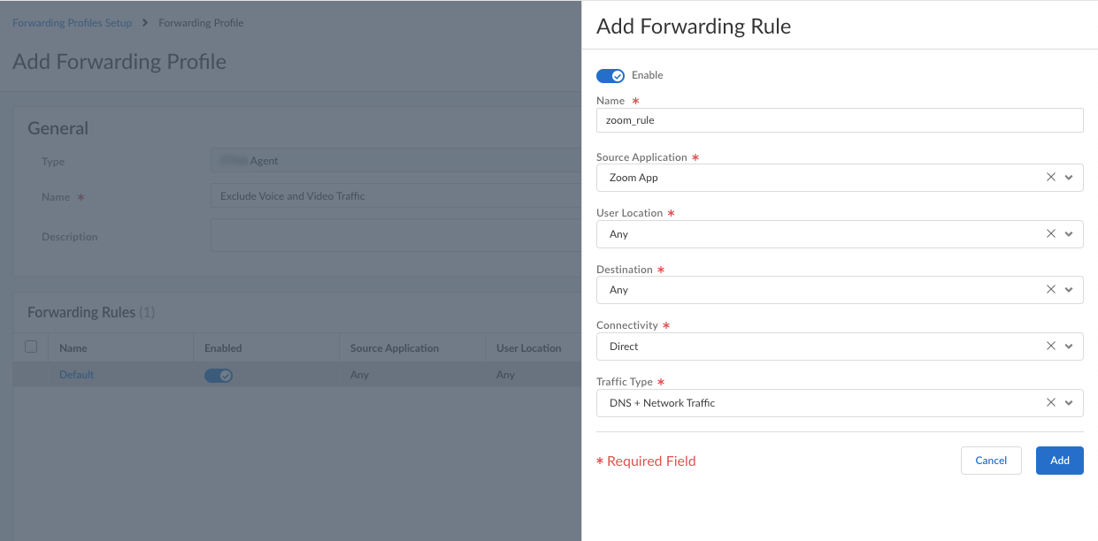 To edit a forwarding profile, select the name of the profile in the Forwarding Profiles table.Enter a meaningful Name for the forwarding profile.Add a forwarding rule.