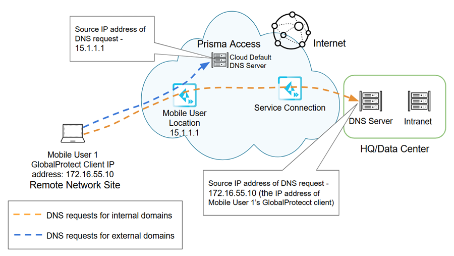 resolved by Prisma Access’ Cloud Default DNS server. In this case, Prisma Access