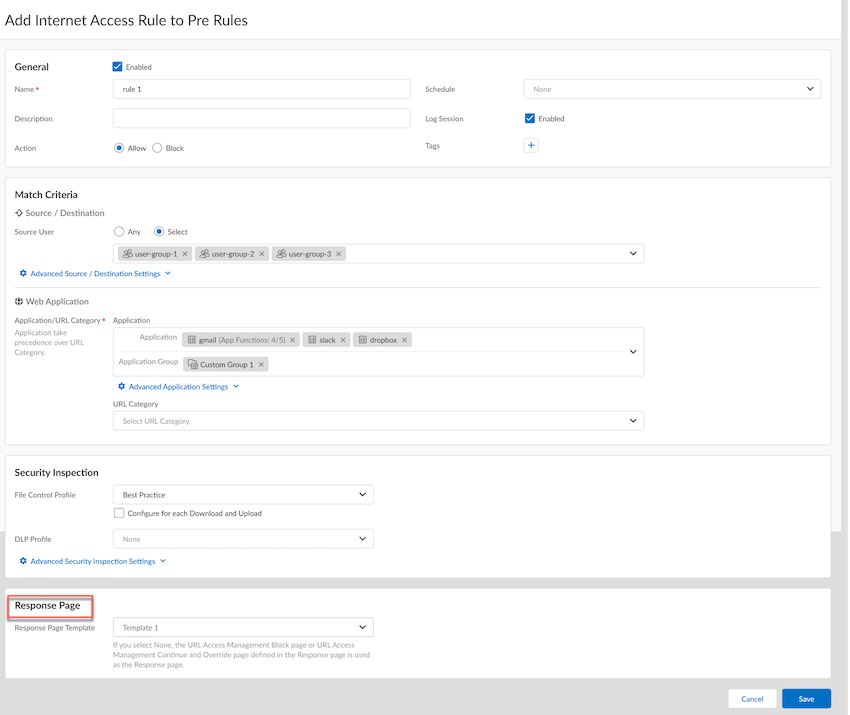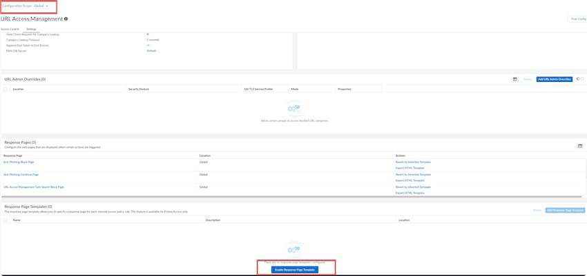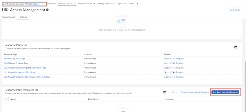 Go to ConfigurationNGFW and Prisma AccessSecurity ServicesURL Access ManagementSettingsResponse Pages.