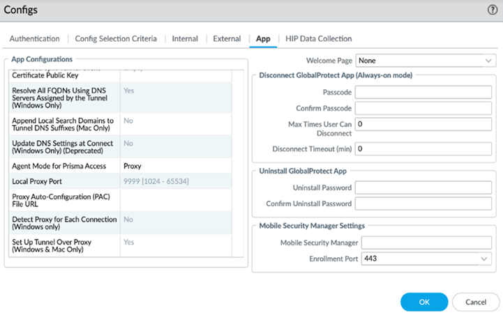 - Enable the agent-based proxy functionality for mobile users on Prisma Access.