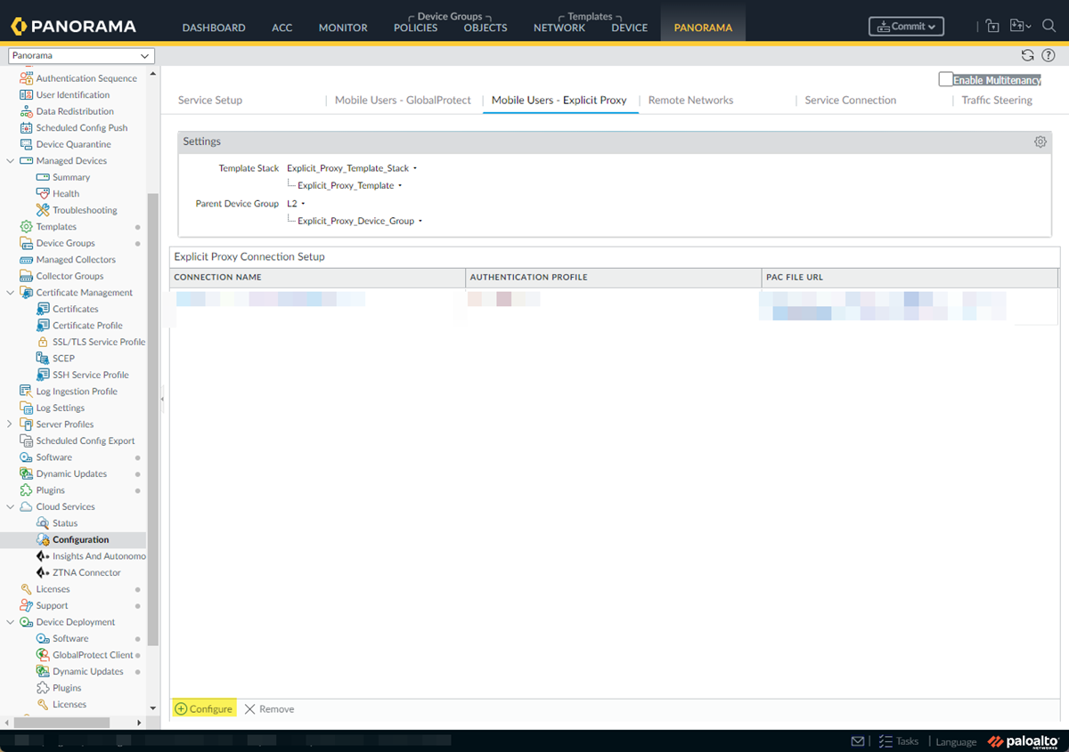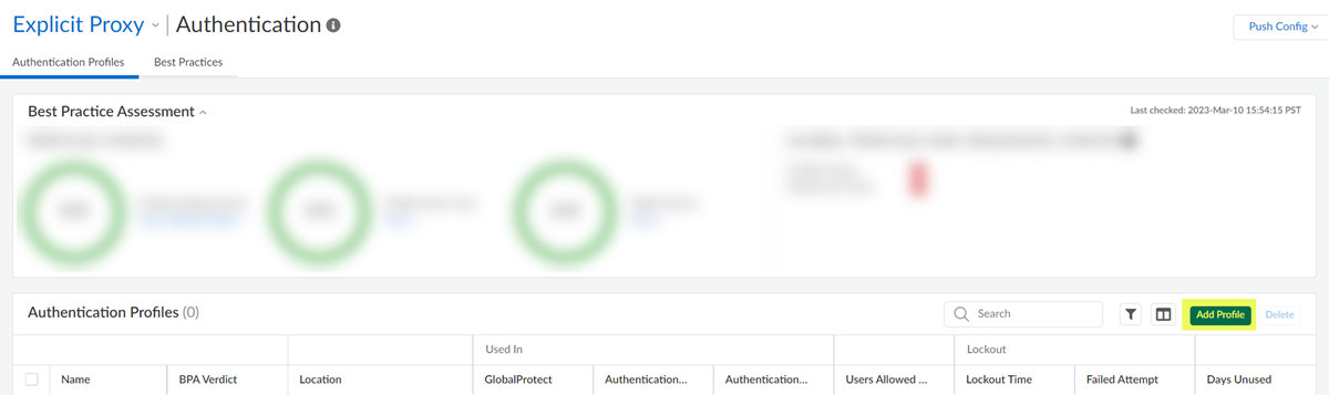 Save your changes.Associate the authentication profile with an authentication method.- Go to Configuration NGFW and Prisma Access and set Configuration Scope to Prisma Access. Select Explicit ProxyUser Authentication.