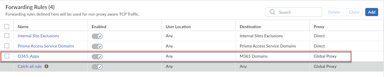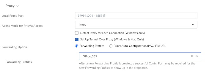 4. Enable Forwarding Profiles and select the configured forwarding profile to start accessing Microsoft Teams and Outlook applications through the Explicit Proxy.