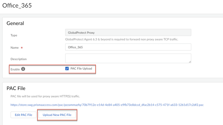 5. Enable the PAC File Upload and upload the updated PAC file.