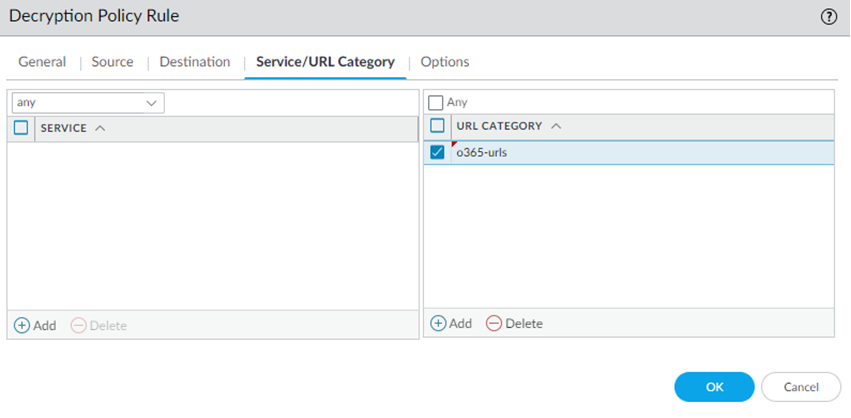 2. Add decryption policies for the URLs that are used for Office 365.