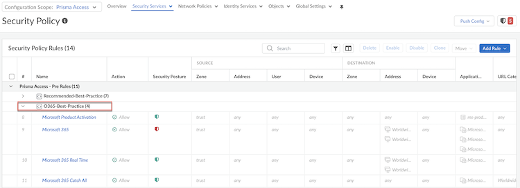 3. Push Config and save your changes to Prisma Access.