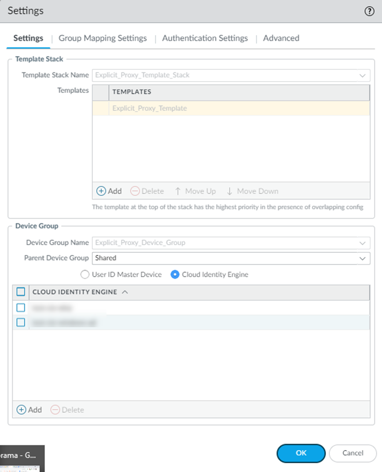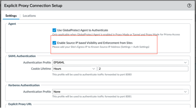 Configure explicit proxy settings.- Select PanoramaCloud ServicesConfigurationMobile Users—Explicit Proxy and select the gear icon to edit explicit proxy Settings.In the Settings tab, edit the following settings: