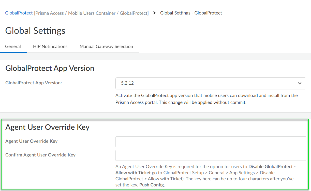 Before you can enable the option for ticket requests to disable GlobalProtect, you must first need to set an Agent User Override Key.