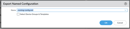 Go to PanoramaSetupOperations and Export named Panorama configuration snapshot.This .xml file is required to upload to Strata Cloud Manager during the migration process. Don't upload a techsupport file or any other file except an .xml configuration file.The user exporting this file in Panorama must have an administrative role of Superuser.Select the running-config.xml configuration file and OK.