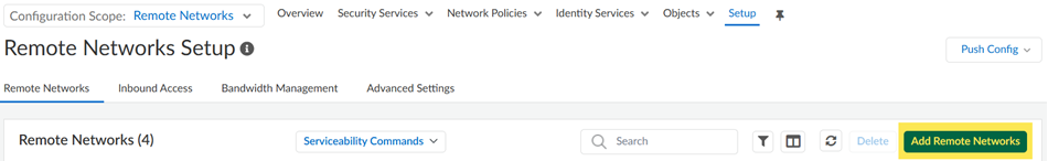 3. Go to ConfigurationNGFW and Prisma AccessConfiguration ScopePrisma AccessRemote NetworksAdd Remote Networks.