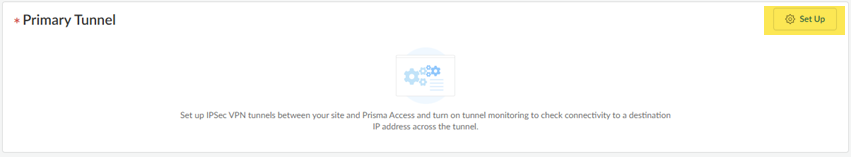 You must configure a static route on your CPE to the Tunnel Monitor IP Address for tunnel monitoring to function. To find the destination IP address to use for tunnel monitoring from your branch location to Prisma Access, select PanoramaCloud ServicesStatusNetwork Details, click the Service Infrastructure radio button, and find the Tunnel Monitor IP Address.
