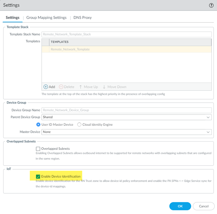 - Go to PanoramaCloud ServicesConfiguration.Select Mobile Users or Remote Networks, depending on where you want to use third-party Device-ID.In the Settings panel, click the gear icon to edit the Settings, and select Enable Device Identification.If you don't see the Enable Device Identification option, contact your account team to enable Third-Party Device-ID.