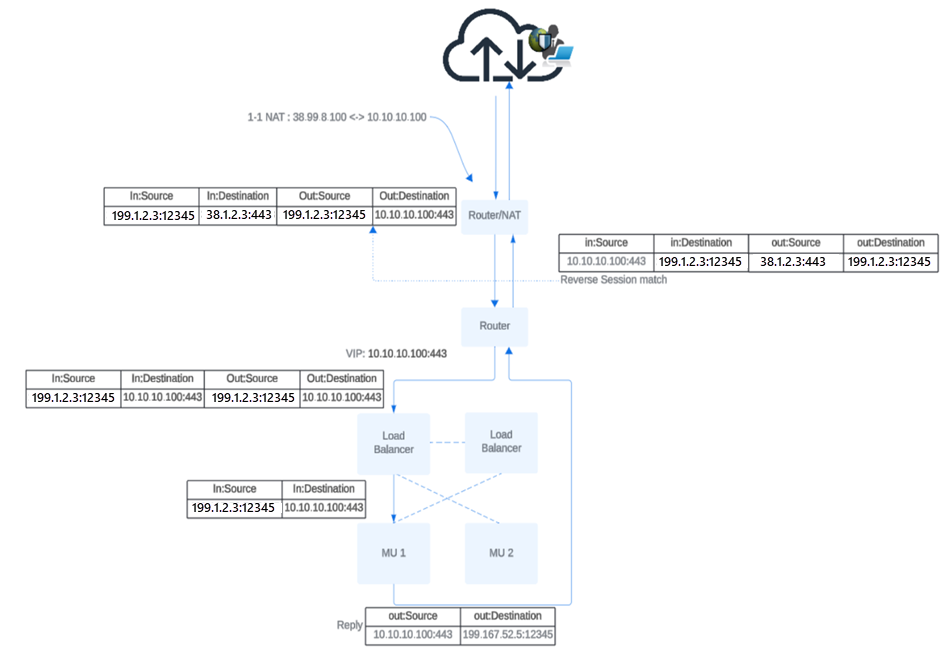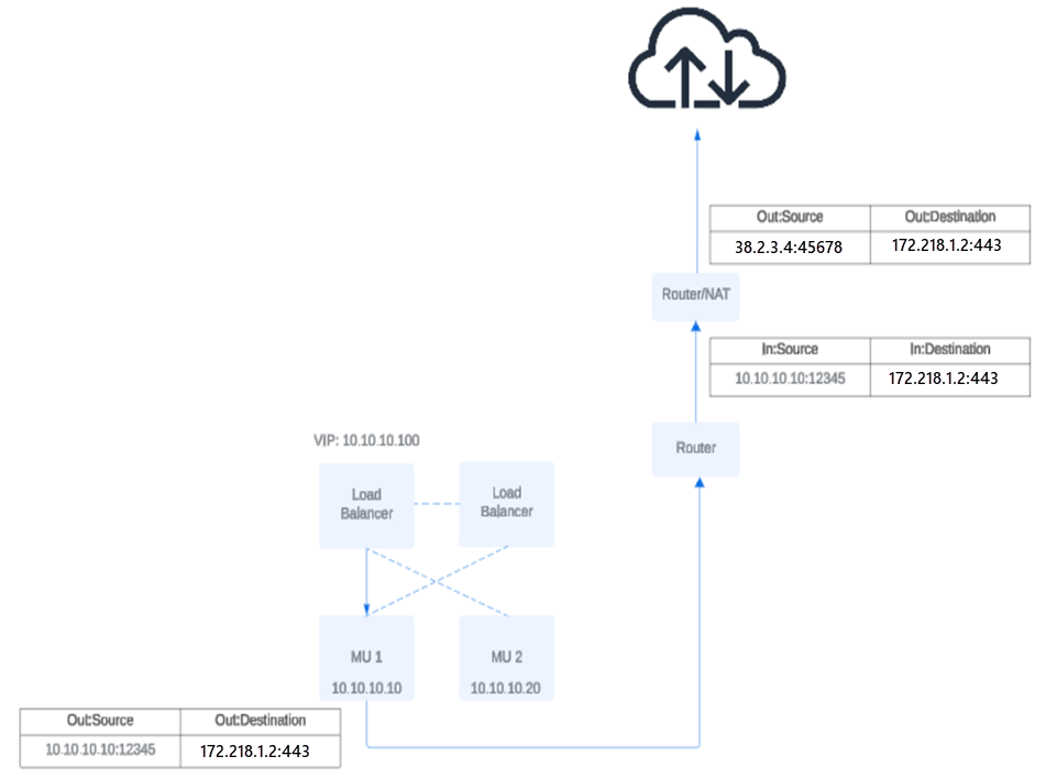 following diagrams show the inbound and outbound traffic flow for the gateway.