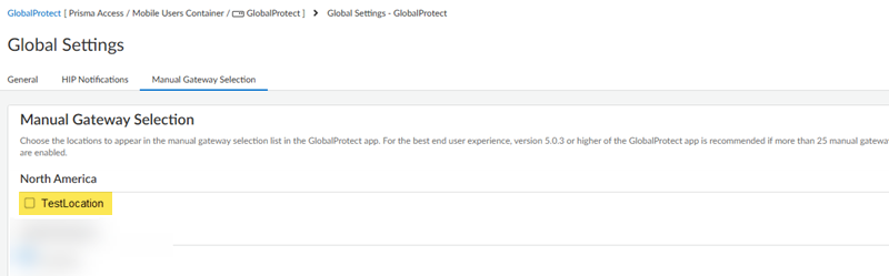 Select the GlobalProtect tab; then, select Global App SettingsManual Gateway Selection.Deselect the SASE private location and Save your changes.
