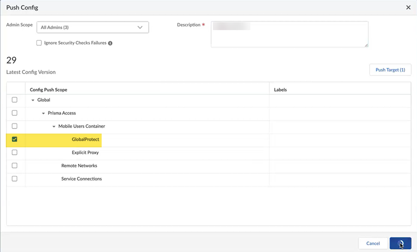 Push Config, making sure that you have selected the Prisma Access configuration scope.