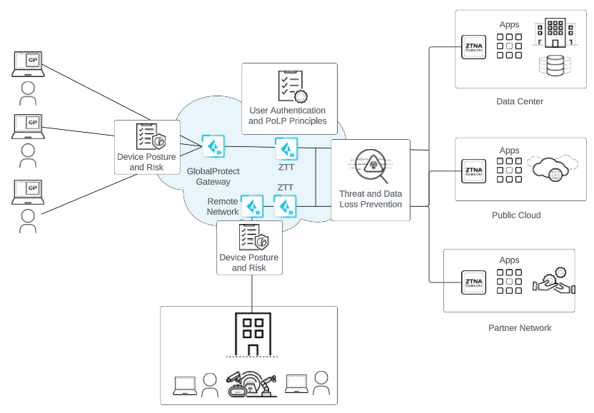 - Device Posture and Risk—Using policy rules based on User-ID in Prisma Access, you can define a posture for users and devices (both mobile user and IoT devices) to prevent unauthorized access to the private apps. You can also create common policy rules between ZTNA Connector and Prisma Access.