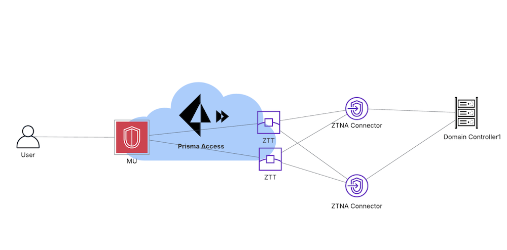 Microsoft Active Directory Domain Services (AD DS) relies on a two-phase DNS resolution process that requires special handling in Prisma Access ZTNA deployments. When a Microsoft client joins a domain, it first makes a DNS SRV query to identify domain controllers offering specific services, followed by Connectionless Lightweight Directory Access Protocol (CLDAP) queries to locate the optimal domain controller in the user's AD site.