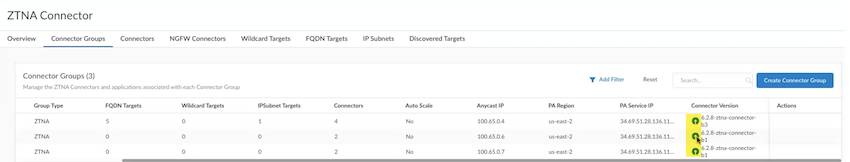 - Go to ZTNA ConnectorConnector Groups. Green arrows indicate that an upgrade is available.You can only upgrade to the latest image version that is available for the tenant.Click the green arrow next to the Connector Group.