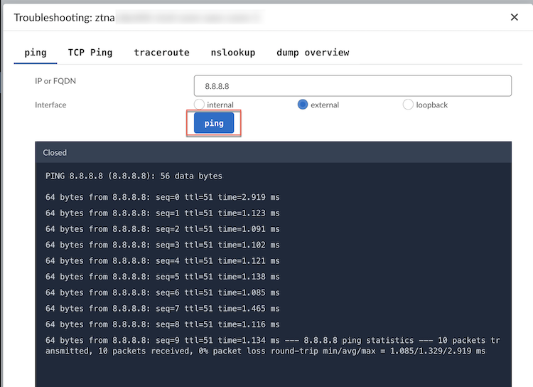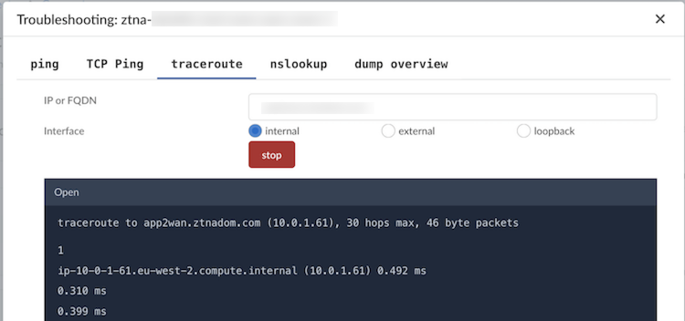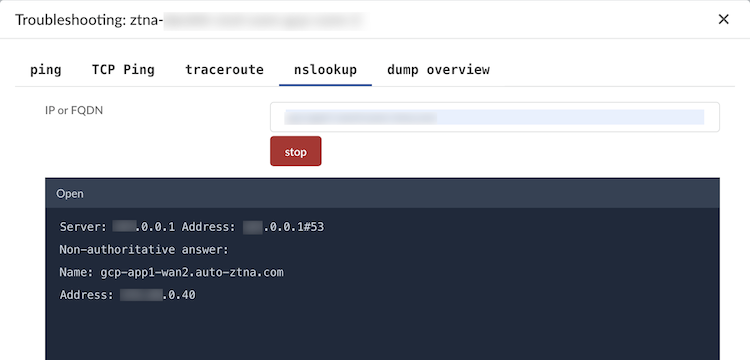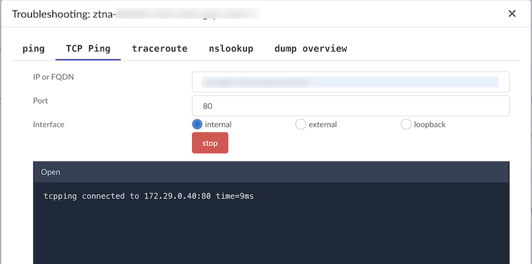 Diagnostic tools used with ZTNA Connector and how to use them (ping, tcpping, traceroute, nslookup).