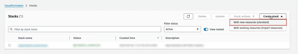 Navigate to CloudFormationStacksCreate stackWith new resources (standard) to create the stack.