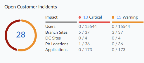 Open Prisma Access Infrastructure Incidents—Shows the number of Prisma Access infrastructure incidents, their status, and impact.