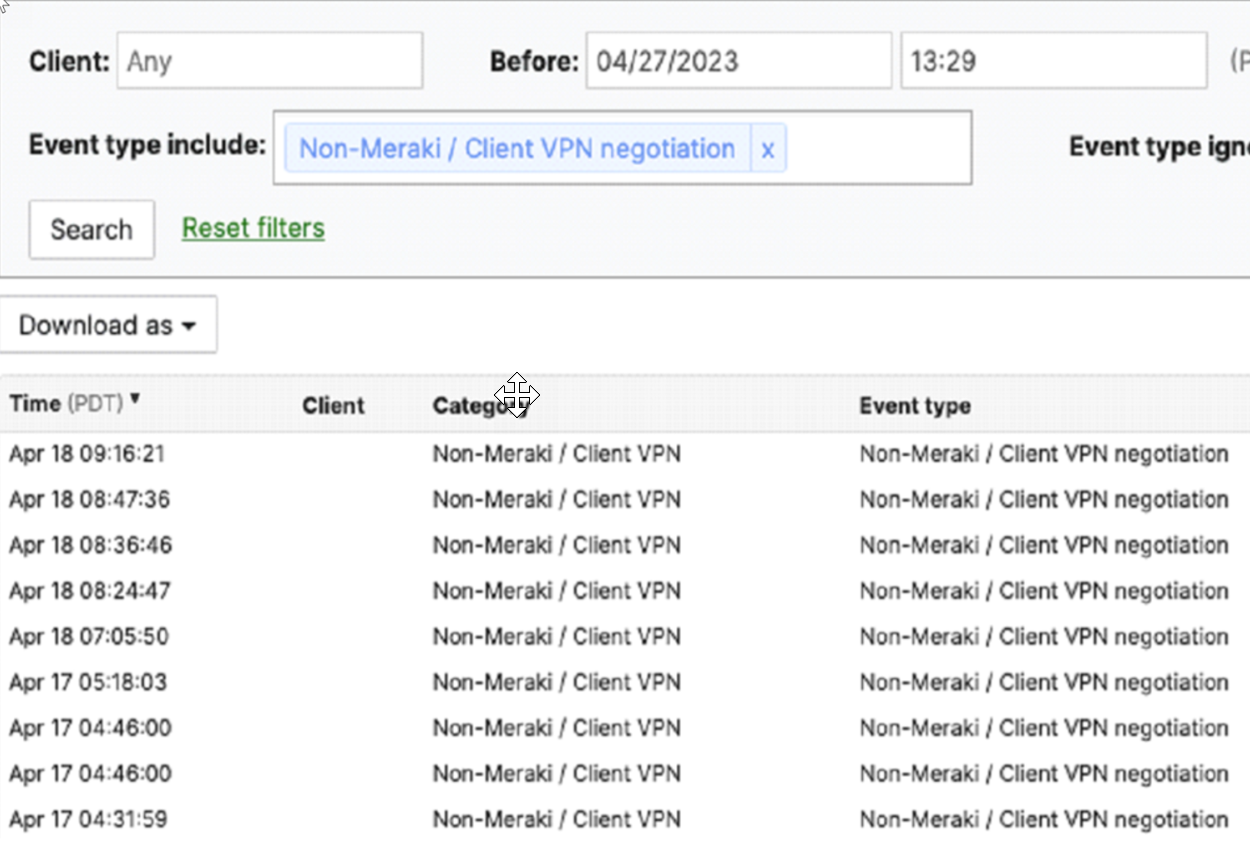 View the logs under Network-wideEvent Log for non-Meraki event types.
