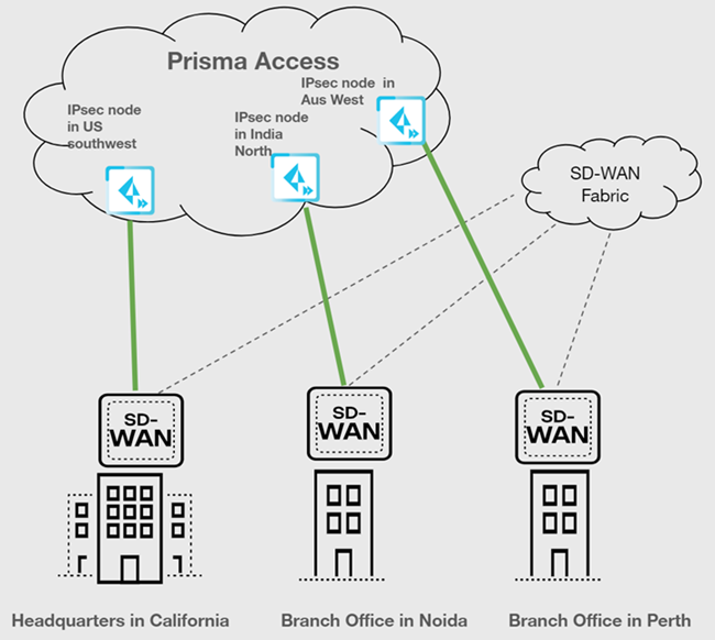 | Securing branch and HQ sites with active/backup SD-WAN connections |