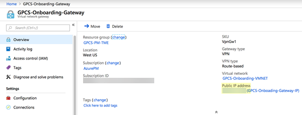 It may take up to 30 minutes to create the virtual network gateway.After Azure creates the virtual network gateway, select the virtual network gateway you created, click Overview, and make a note of the Public IP address assigned to the virtual network gateway.