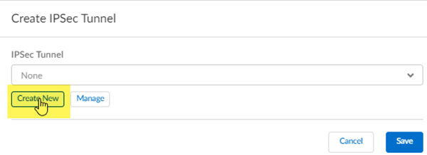 Select an existing tunnel, or select Create New to create a new tunnel.