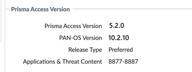 - Recommended Software Versions for Prisma Access 5.2.1 Preferred and Innovation