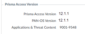 - For Prisma Access (Managed by Strata Cloud Manager), view your Prisma Access version