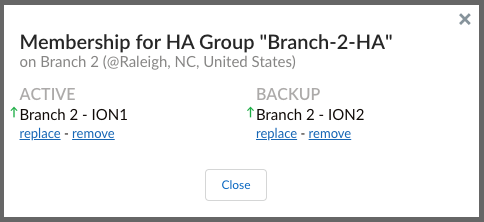 - Select ConfigurationBranch Sites.Select the site and from the ellipsis menu, select HA Groups.On the HA Groups screen, from the ellipsis menu of the selected HA group, select Edit.