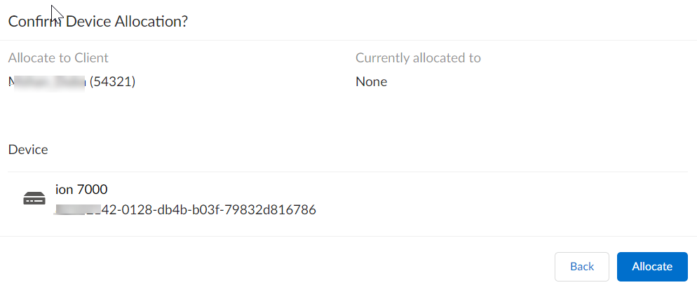 - Log in to the MSP Portal with valid credentials.Select ManageDevicesION Devices.Multiple regions where the MSPs can manage their client tenants are listed.Select the region from where the device needs to be allocated to the client tenant.The inventory of devices allocated to the MSP tenant for the region is listed in the Available for Client Allocation state.Sales Order # can be used to group all devices in the same order and simplify bulk device allocation to a tenant.Order Association Date (UTC) shows the date associated with the order.(Optional) Apply any of the following filter criteria to refine your search.
