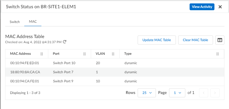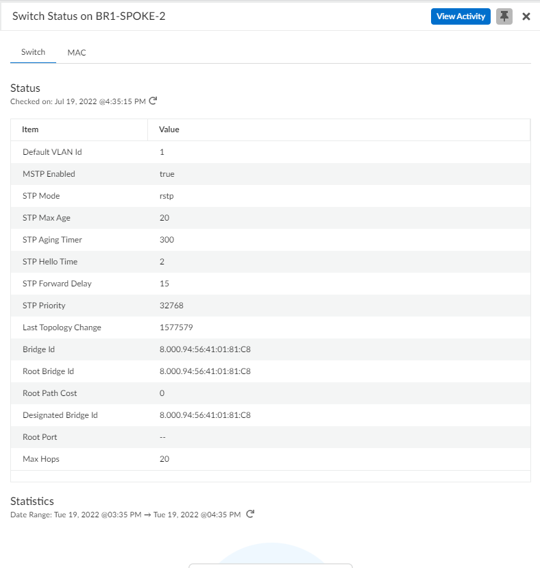 Monitor the L2 Switch activity and statistics from the Prisma SD-WAN user interface.