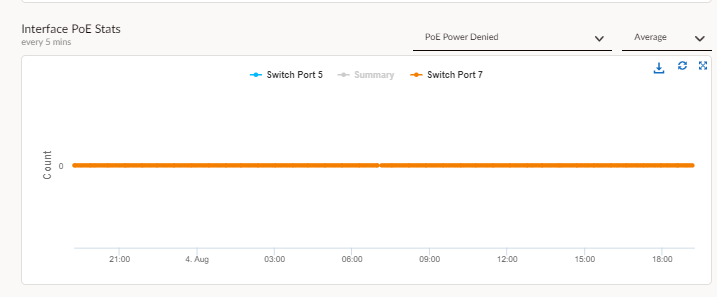 Monitor the activity and statistics of the PoE ports by selecting the Activity icon and the Stats icon on the System Tab.