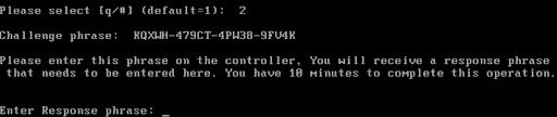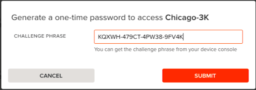 7. Enter the Challenge Phrase provided earlier by the device console, and click Submit.