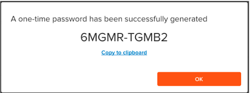 If successful, a one-time password response will be generated.