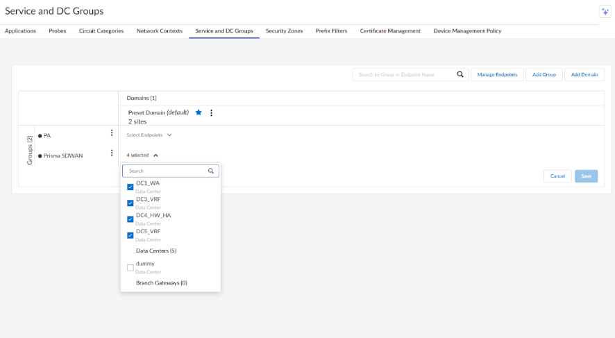 Create VRF Definitions and Profile.- Navigate to ConfigurationPrisma SDWANResourcesVRF.