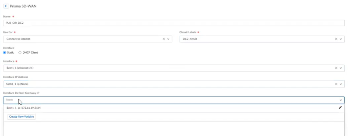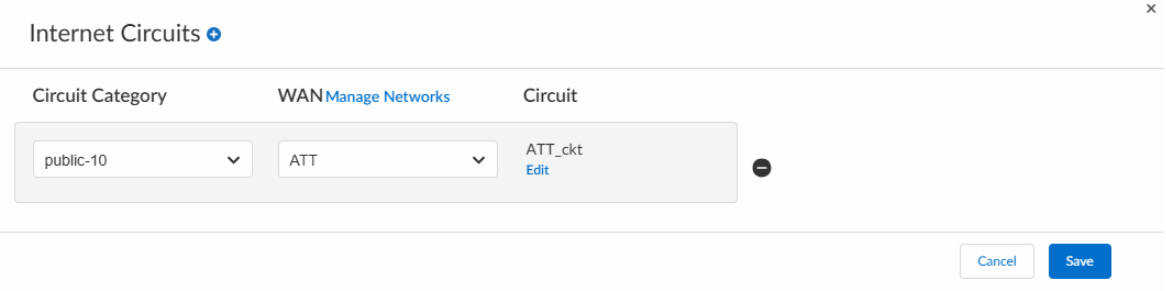 9. Create a circuit on the DC site for a public circuit on the firewall. Save your changes.