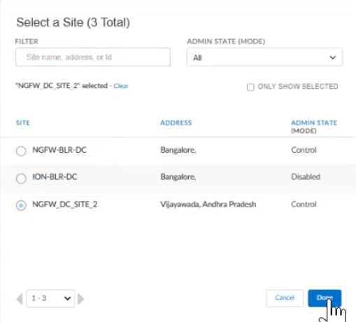 • Assign NGFW to DC site; by default Global VRF profile is attached.