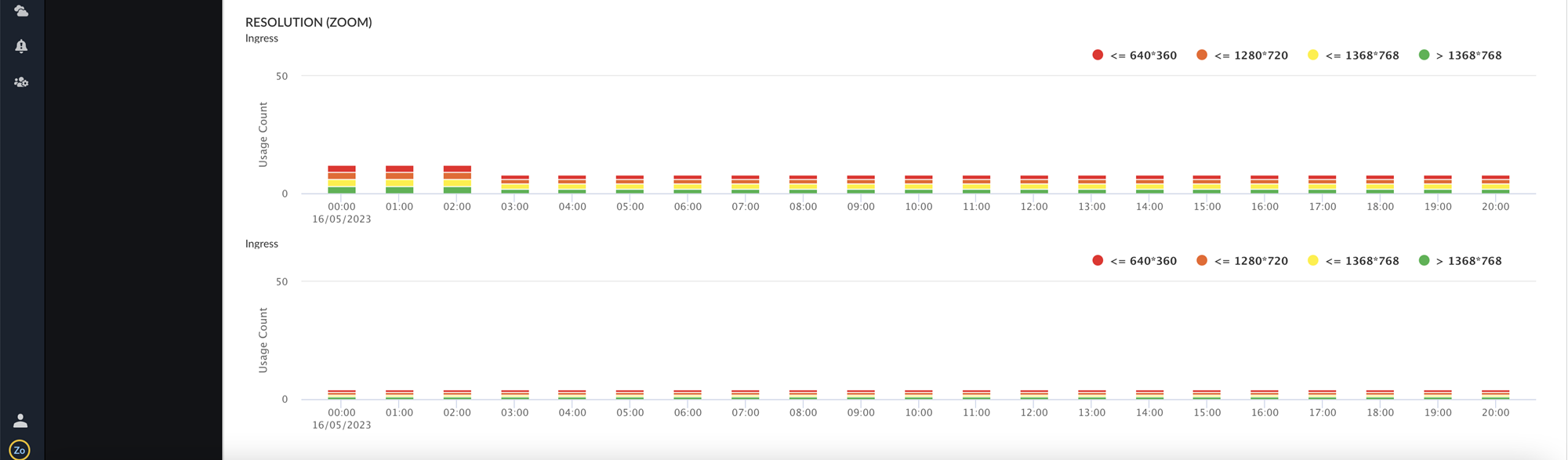 - Frame Rate (Zoom):The Frame rate (expressed in frames per second or FPS) at which consecutive images (frames) are captured or displayed from the Zoom application in both the ingress and egress directions.