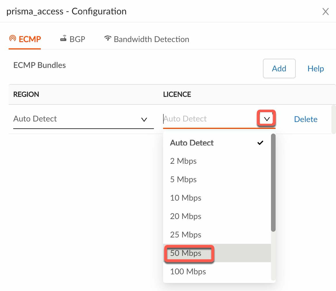 Auto-detect only works with Prisma Access non-aggregate bandwidth model. If using the Prisma Access aggregate bandwidth model, you must assign interface-level tags appropriately to add them to an ECMP deployment for Prisma Access.