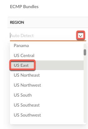 When you create an ECMP bundle, the default selection is Auto Detect for both Region and License level sections by default.