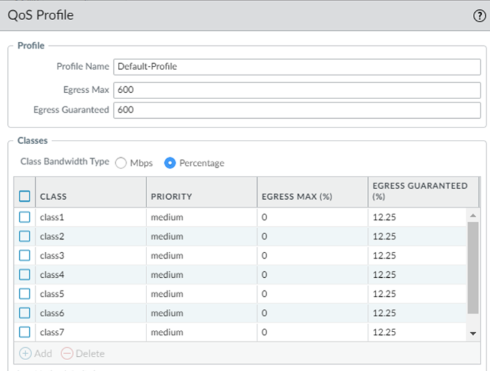 Any traffic that exceeds the Egress Guaranteed value is best effort and not guaranteed. Unused guaranteed bandwidth continues to remain available for all traffic.In the Classes section, Add one or more classes and specify how to mark up to eight individual QoS classes.- Select the Priority for the class (either real-time, high, medium, or low).