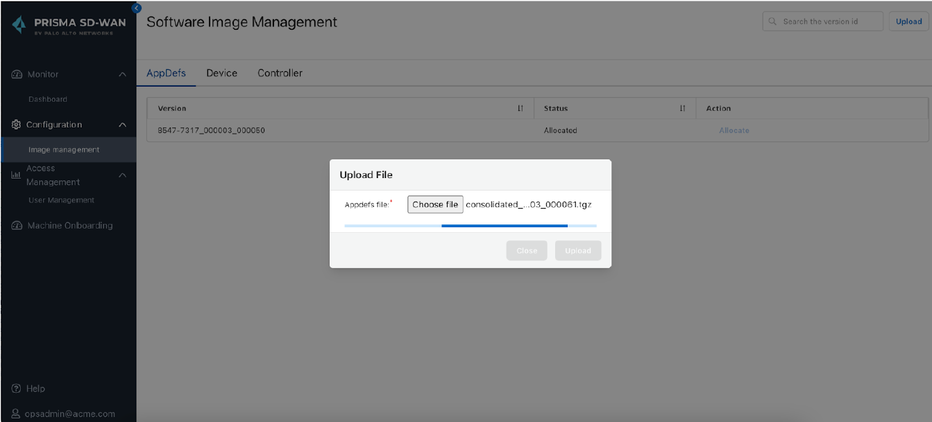 1. Download the required appdef bundles and upload them using the Operator console.