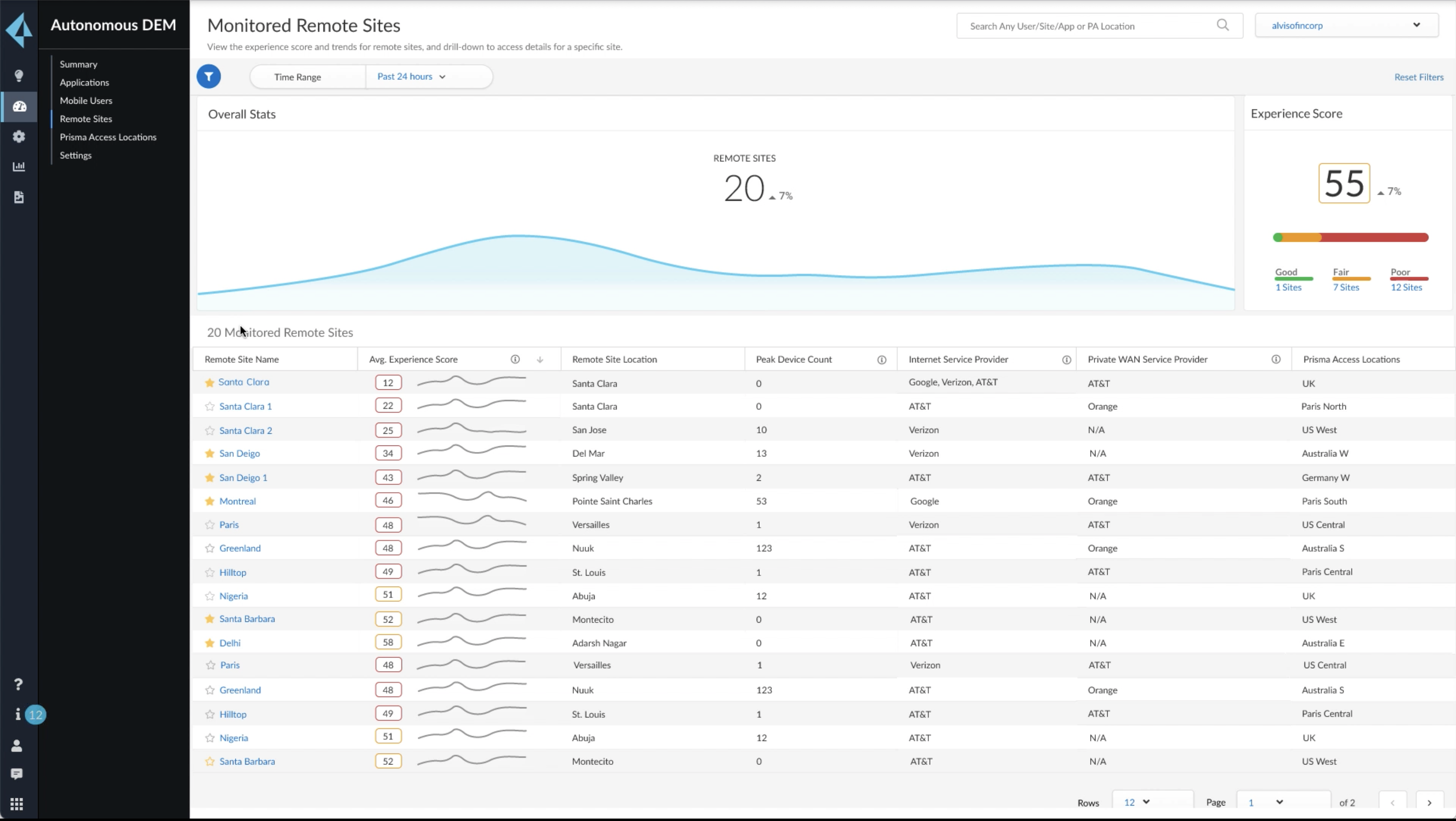 Site Summary Dashboard | Prisma SD-WAN introduces a new site summary dashboard which