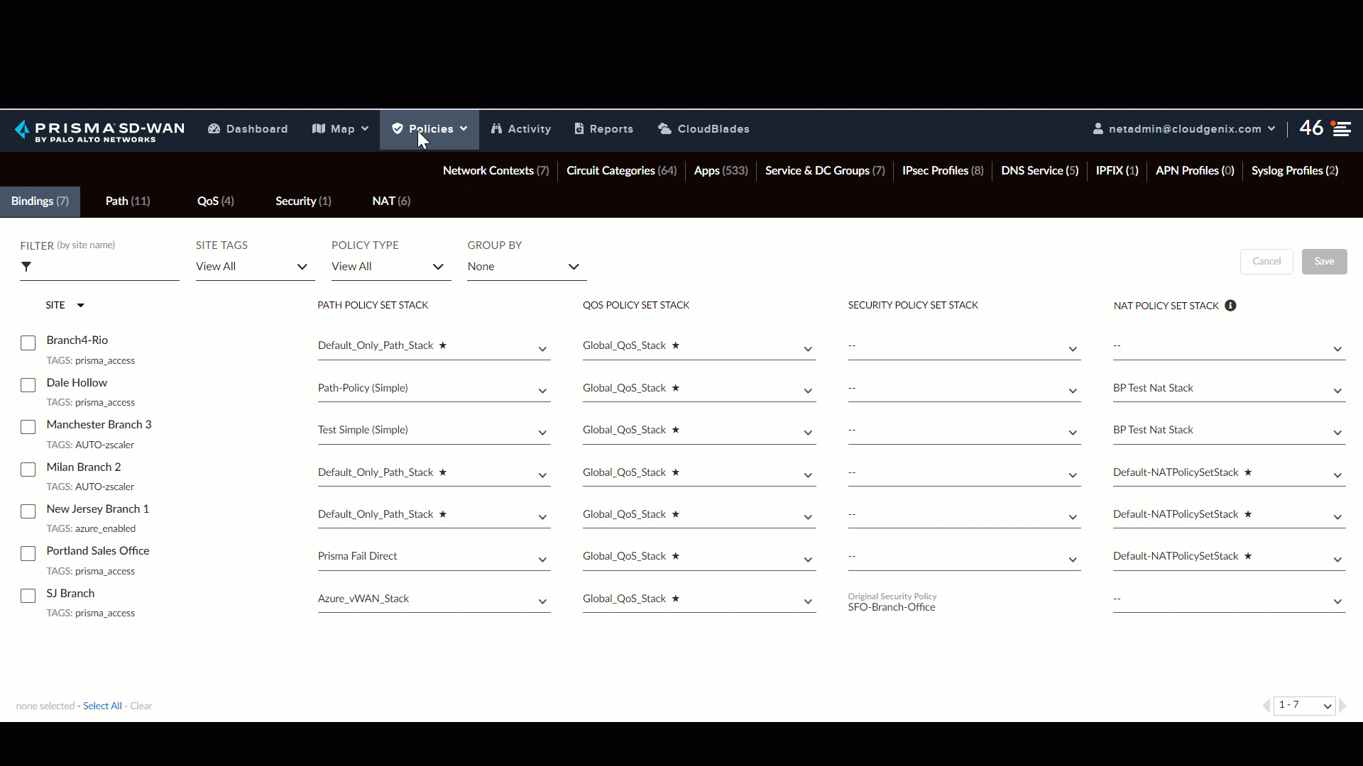 Stacked Security Policies | Prisma SD-WAN supports stacked security policies to
